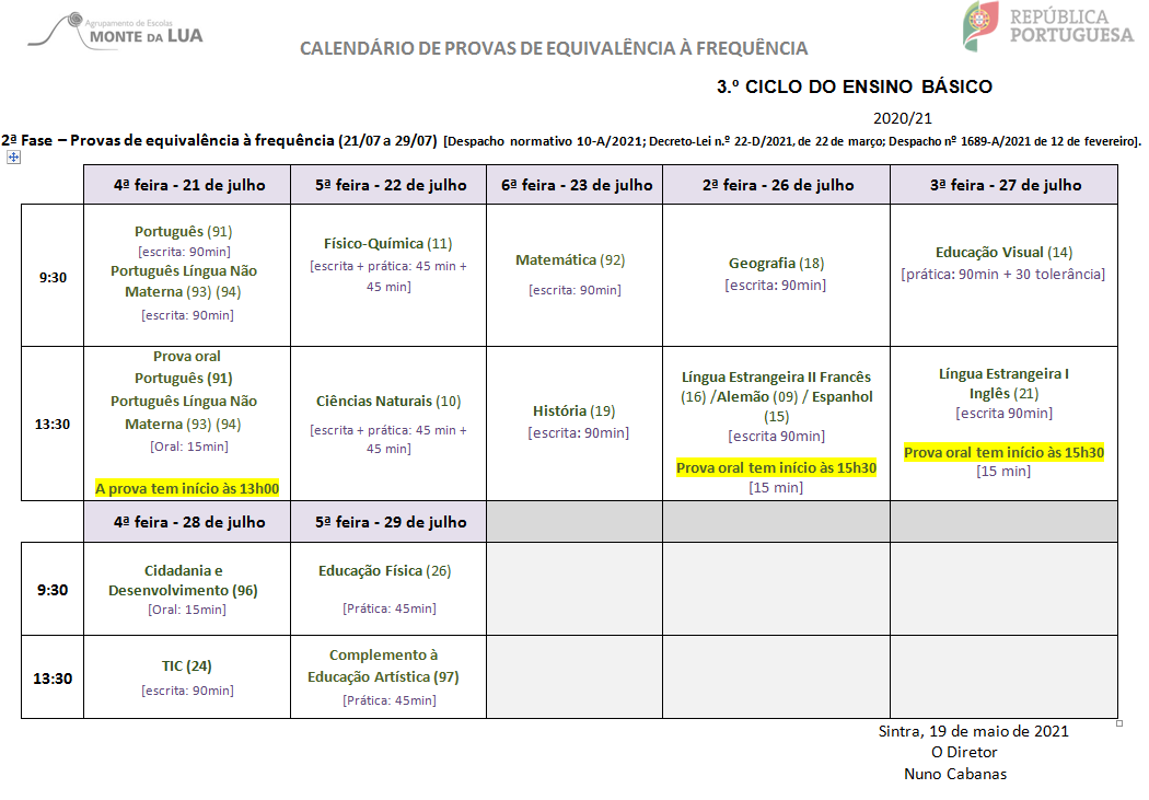 Informa-se os alunos e os encarregados de educação que nos próximos dias 19 e 20 de julho (até às 17h) decorrem as inscrições para as provas de equivalência à frequência (PEF) do 3º ciclo na plataforma