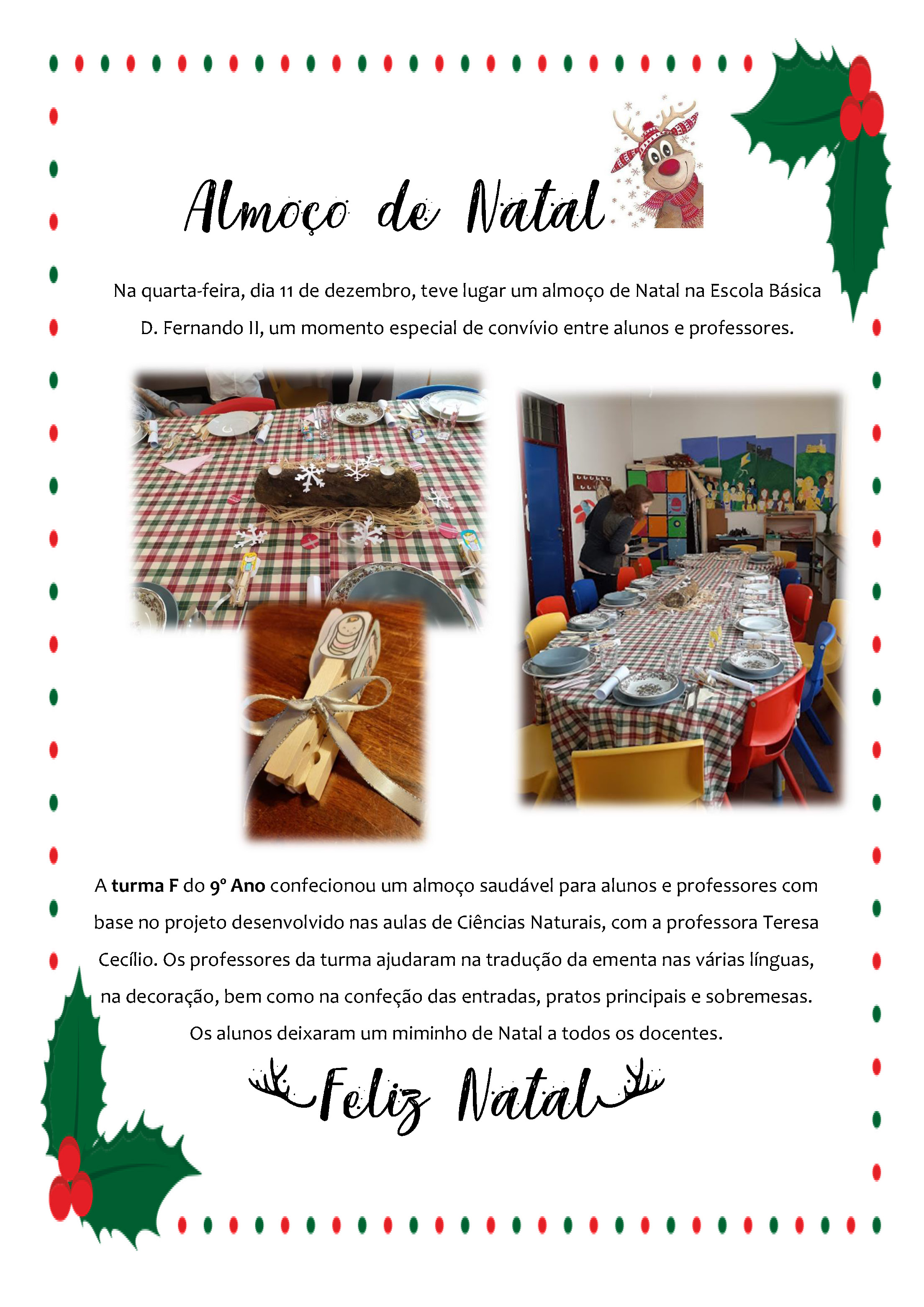 Na quarta-feira, dia 11 de dezembro, teve lugar um almoço de Natal na Escola Básica D. Fernando II, um momento especial de convívio entre alunos e professores.