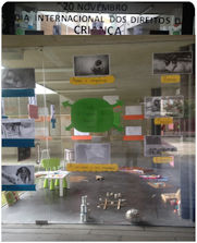 Apresentaram, no cubo 2, uma exposição com mensagens alusivas aos direitos das crianças e à violação desses mesmos direitos.